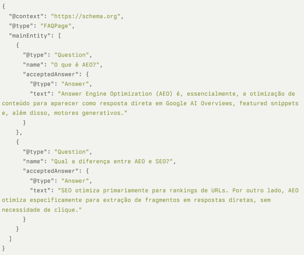 Estrutura ideal técnica de FAQ com Otimização AEO: